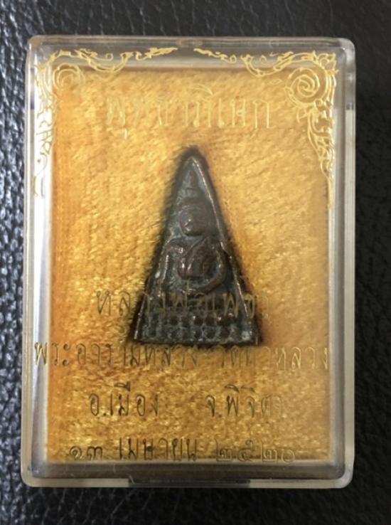 หลวงพ่อเพชร วัดท่าหลวง จังหวัดพิจิตร ปี 2520 มวลสารเหรียญหล่อหลวงพ่อเพชรสามเหลี่ยมรุ่นแรก โลหะทันหลวงพ่อเงินเสก พิธีใหญ่มาก พระบ้านเก่าเก็บพร้อมกล่องเดิม |