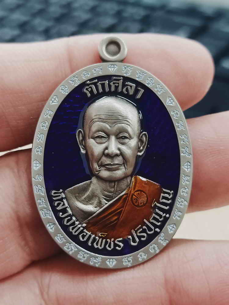 วัดใจ 100 เหรียญตักศิลา หลวงพ่อเพ็ชร วัดประดู่ทรงธรรม จ.อยุธยา 2566 อัลปาก้าซาติน ลงยา หมายเลข 34 สร้าง 144 เหรียญ กล่องเดิม |