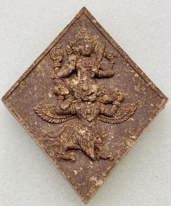 พระผงนารายณ์ทรงครุฑมหาจักรพรรดิ วัดหน้าพระเมรุ อยุธยา เนื้อผงว่าน ด้านหลังฝังคันฉ่องและตะกรุด 4 ดอก