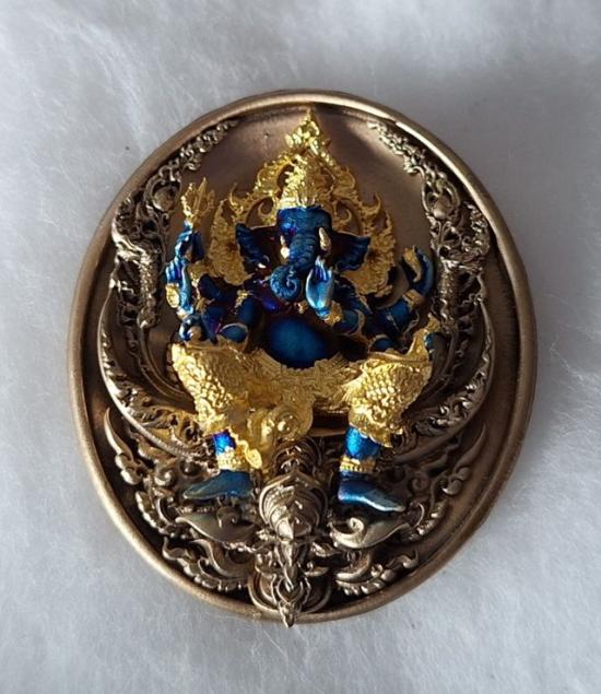 หลวงปู่จื่อ พันธมุตโต (หลวงปู่มหาศิลา เมตตาอธิษฐานจิต) เหรียญ หล่อพุทธศิลป์ พระพิฆเนศ รุ่น ประทานพร เนื้อบรอนซ์ ซาติน องค์ชุบบลูโรเดียมลายทอง No.190 |