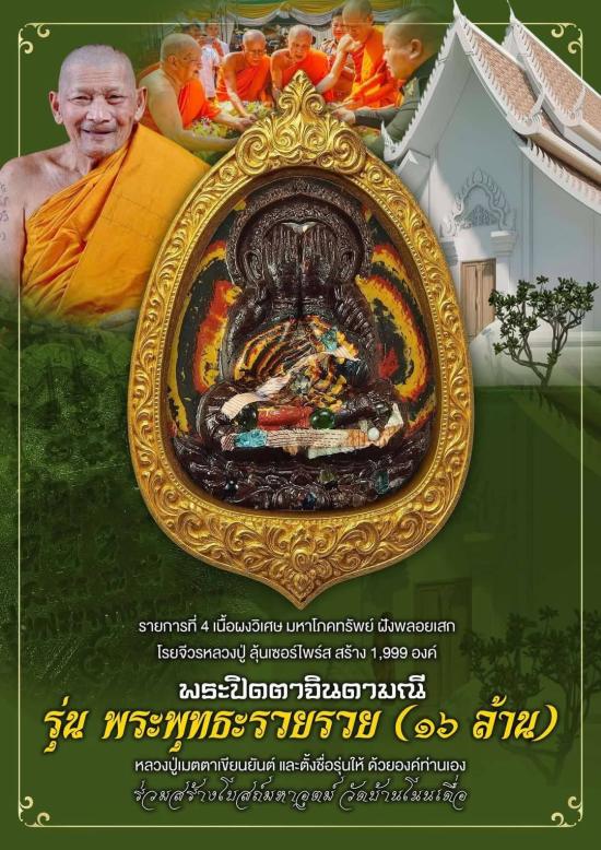 รายการที่ 4 เนื้อผงวิเศษมหาโภคทรัพย์ ฝังพลอยเสก โรยจีวรหลวงปู่ ซีลเดิม ลุ้นเลขสวย จัดสร้าง 1,999 องค์