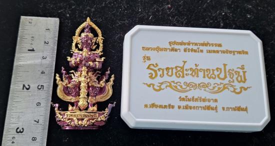 รูปหล่อลอยองค์ท้าวเวสสุวรรณ หลวงปู่ศิลา ขนาด7.5ซ.ม รุ่นรวยสะท้านปฐพี วัดโพธิ์ศรีสะอาด เนื้อชุบสีม่วงปัดทอง สีประจำวันเกิด วันเสาร์ เลขสวยNo.9 |