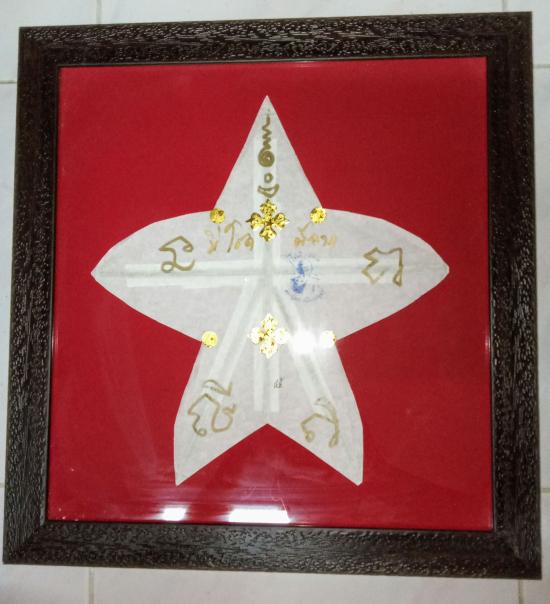 รวยๆเฮงๆ ติดลมบน ว่าวจุฬาขาว เข้ากรอบพื้นกำมะหยีอย่างดี หลวงปู่ลอง วัดวิเวกวายุพัด สร้างเพียง 300 ตัว สภาพสวย เลขสองหลัก45 หลานแท้ๆหลวงปู่พริ้งวัดบางปะกอก ได้ทั้งแขวนและตั้งโต๊ะ ขนาดใหญ่กรอบขนาดฟุตกว่ |