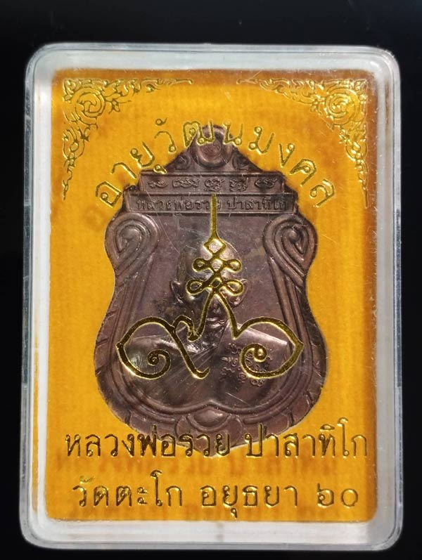 วัดใจ ร้อยเดียว เหรียญอายุวัฒนมงคล ๘ รอบ(รุ่นสุดท้าย วัดตะโก)+พระสมเด็จบางขุนพรหม ผสมผงเก่าแช่น้ำมนต์ปี 2547+พระสมเด็จคะแนน(จาร)+ธนบัตรขวัญถุง ชนิดราคา 10 บาท หลวงพ่อรวย วัดตะโก จังหวัดอยุธยา ปลุกเสก |