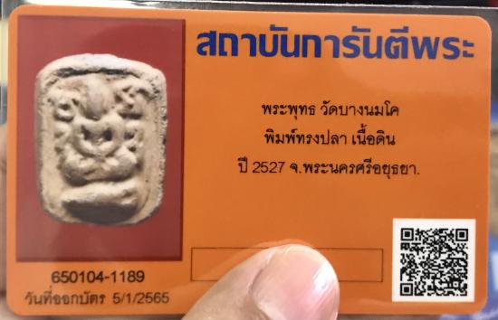 พระพุทธ วัดบางนมโค พิมพ์ทรงปลา เนื้อดิน จ.อยุธยา ปี 2527 พร้อมบัตรรับรองการันตีพระ ติดรางวัลที่ 3 งานใหญ่ศูนย์ราชการหลักสี่ |