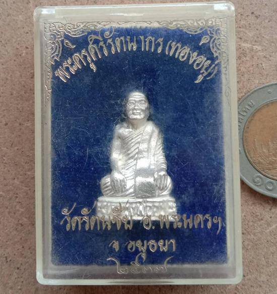 รูปหล่อเนื้อเงิน หลวงพ่อทองอยู่ วัดรัตนชัย จ อยุธยา ปี2537 พร้อมกล่องเดิม ตามรูปครับ
