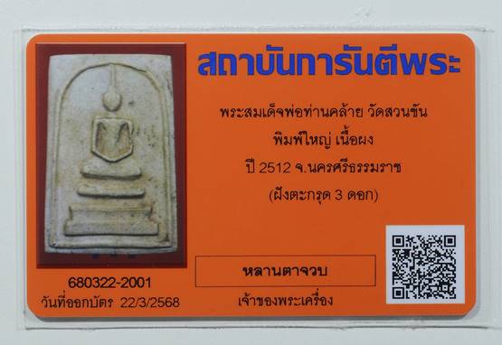 พระสมเด็จพ่อท่านคล้าย วาจาสิทธิ์ (ฝังตะกรุด 3ดอก) ปี12 สวยๆครับ
