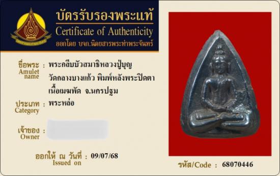 <<<วัดใจ20บาท..พระกลีบบัวสมาธิหลวงปู่บุญ วัดกลางบางแก้ว จ.นครปฐม เนื้อเมฆพัด พิมพ์หลังพระปิดตา สร้างปี 2470-2478 (บัตรรับรองนิตยสารพระท่าพระจันทร์) ตัวจริงเสียงจริง สวยเดิมทุกประการ น่าบูชามากๆครับ>>>