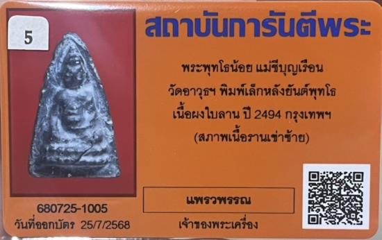 พระพุทโธน้อยพิมพ์เล็กหน้าตุ๊กตาเนื้อผงใบลานปี2494วัดอาวุธ.คุณแม่บุญเรือน |