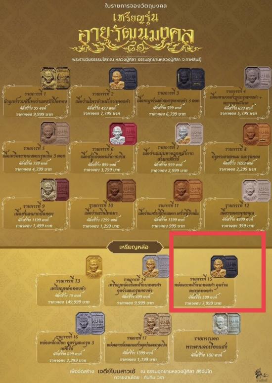 หลวงปู่มหาศิลา หล่อนวะหน้ากากทองคำ อุดว่านตะกรุดทองคำ ป้ายแดงซีลเดิม ลุ้นเลขสวย ราคาจอง 7,999 บาท เหรียญสวยๆ