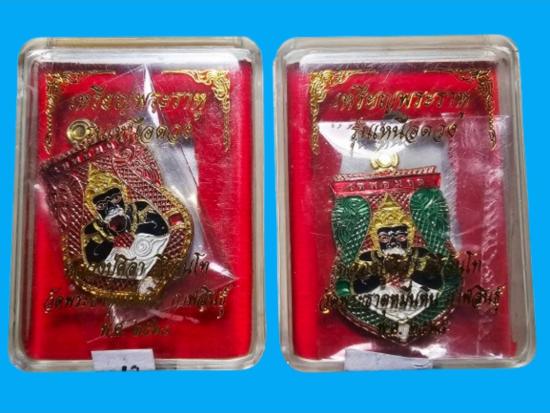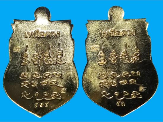 รับ 2 เหรียญ เหรียญพระราหูอมจันทร์ หลวงปู่ศิลา เมตตาอธิษฐานจิต รุ่นเหนือดวง เนื้อทองฝาบาตรลงยา |