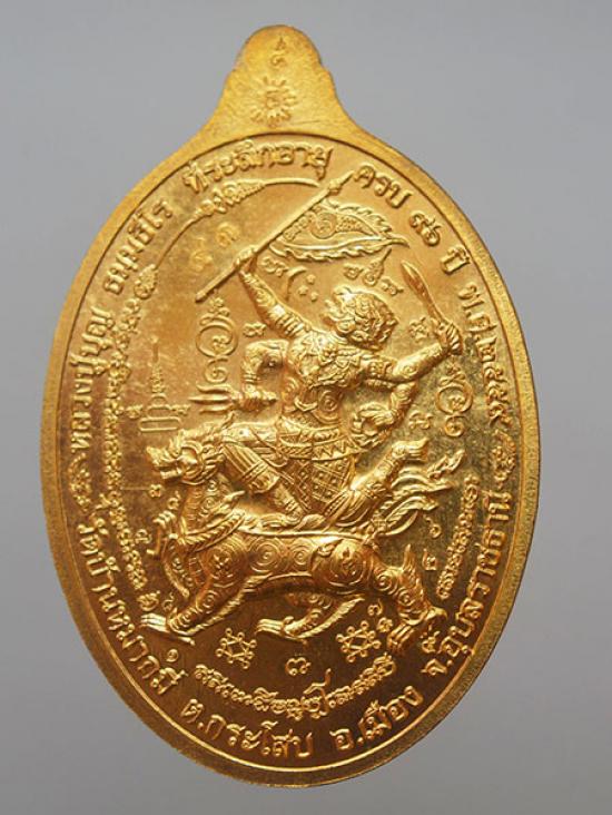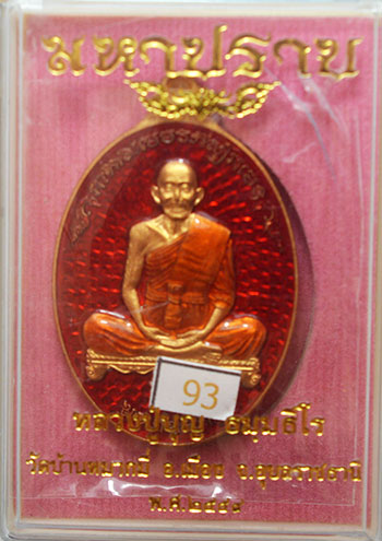 มหาปราบ 2559 เหรียญหลวงปู่บุญ วัดบ้านหมี่ อุบลราชธานี เนื้อสัตตะ ลงยาสีแดง จีวรเหลือง หลังหนุมานเชิญธง โค๊ด เลข 93 |