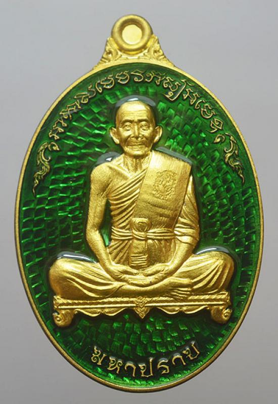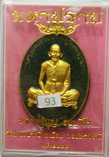 มหาปราบ 2559 เหรียญหลวงปู่บุญ วัดบ้านหมี่ อุบลราชธานี เนื้อทองระฆัง ลงยาสีเขียว จีวรเหลือง หลังหนุมานเชิญธง โค๊ด เลข 93 |