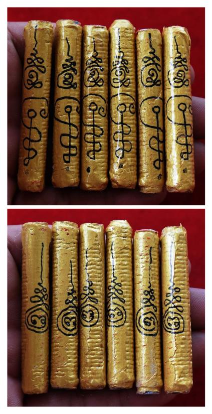 ชุด 6 ดอก...ตะกรุดมนต์สาวหลง (ดอกสีทองจารยันต์) ปี 2557 หลวงปู่สิงห์ วัดบ้านป่าตะแบง จ.นครราชสีมา พร้อมซองรูปจากวัด |