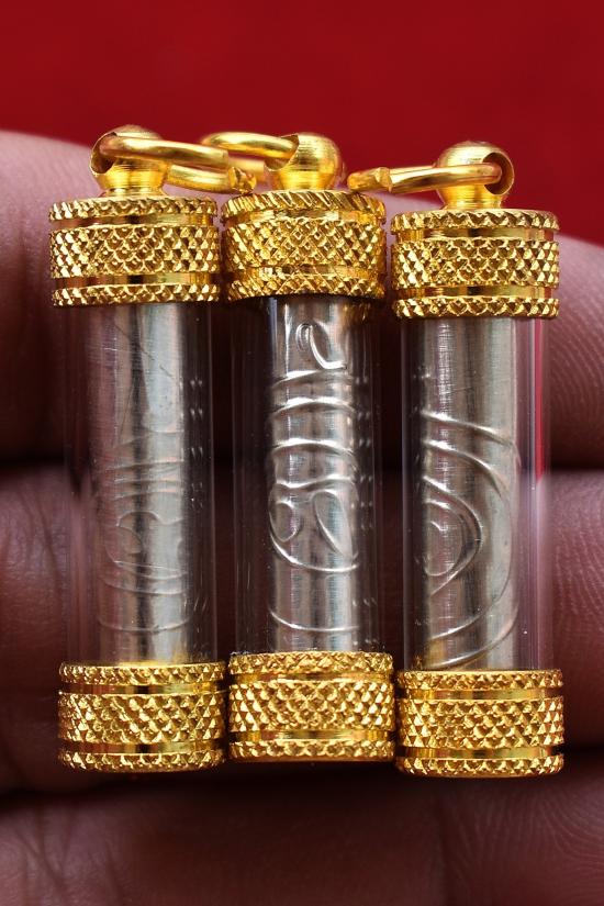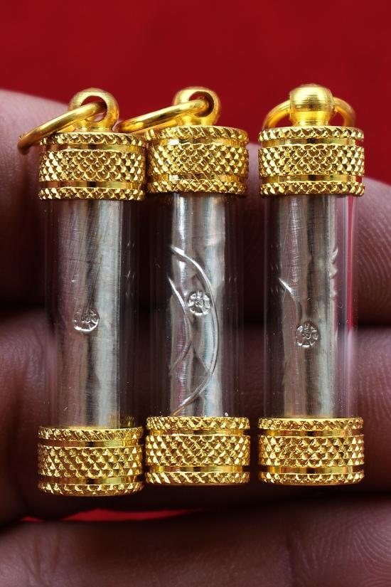 ชุด 3 ดอก...ตะกรุดเทวดาหลงทาง (นางหลงใจ) ปี 2559 เลี่ยมทองไมครอนเดิมจากวัด หลวงปู่สิงห์ วัดบ้านป่าตะแบง จ.นครราชสีมา พร้อมซองรูปเดิมจากวัด สภาพพระตามรูปที่ลงทุกประการ (ขนาดวัดรวมตัวกรอบห้อยประมาณ 3.5 ซม.)