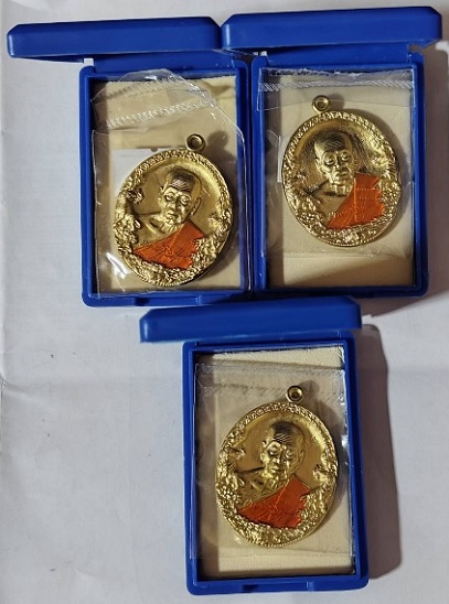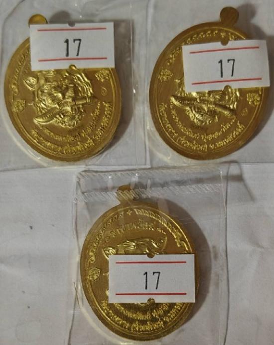วัดใจ 10 บาท 3 เหรียญ แท้ทัน หลวงพ่อพัฒน์ ปลุกเสก "เหรียญหลวงพ่อพัฒน์ รุ่น ราชาพยัคฆ์ เสือ 2 วัดห้วยด้วน จ.นครสวรรค์" เนื้อทองฝาบาตร ลงยาจีวร พร้อมกล่องเดิม |