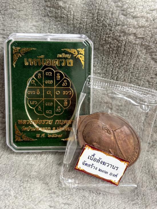 เหรียญเหนือดวง หลวงพ่อรวย วัดป่ามหาลาภ ปราจีนบุรี ปี 2567 เนื้อสังฆวานร สร้าง 293 องค์ พร้อมกล่องเดิม |