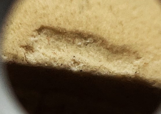 - พระผงหลวงปู่ขาว จมูกมีรอยดำที่วง ภาพแรก มีกระเทาะขอบบน+ขอบล่าง คำว่า ค้าขาย ครับ