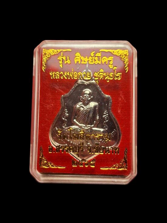 เหรียญหลวงพ่อกวย รุ่นศิษย์มีครู ปี65 บล็อกสายฝนนิยมสุด เนื้ออัลปาก้า กล่องเดิม