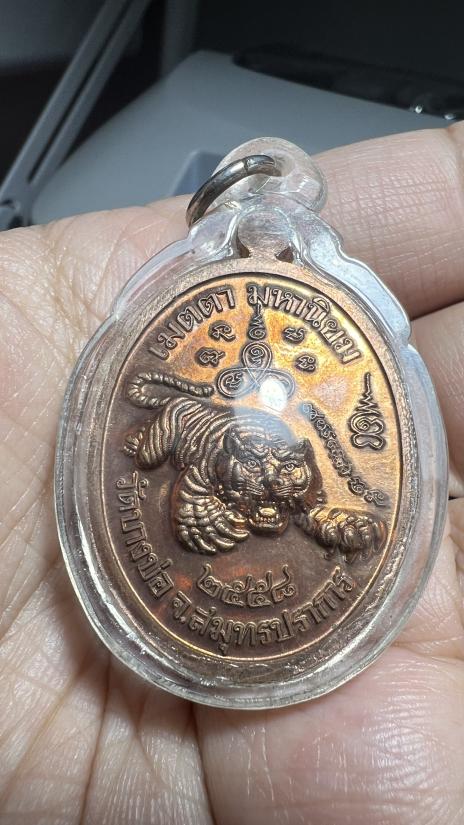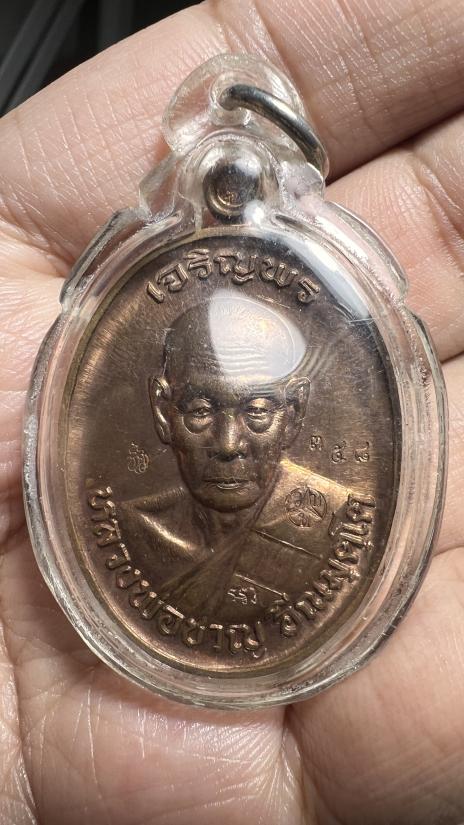 เหรียญหลวงพ่อชาญ รุ่นอายุยืน เจริญพร วัดบางบ่อ จ.สมุทรปราการ (สายเหนียว) เนื้อทองแดงผิวไฟ |