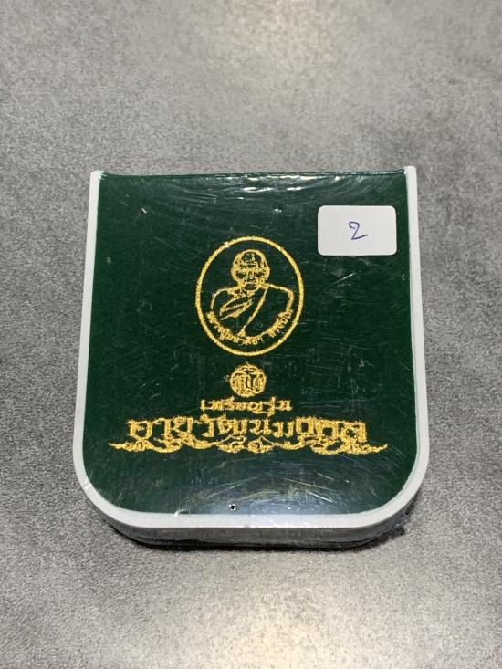 หลวงปู่มหาศิลา หลวงปู่ศิลา รุ่นอายุวัฒนมงคล พิมรุ่นแรก2 เนื้อเงินลงยาสีเขียว ซีลเดิม#2