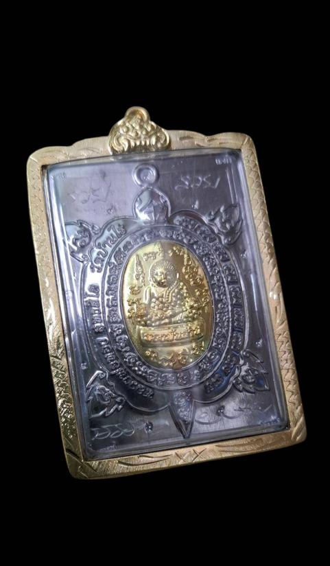 เนื้อตะกั่วรองพิมพ์ หน้ากากทองฝาบาตร พร้อมรอยจารหลวงพ่อทอง ตอกโค็ด พิเศษ-เเจก-กรรมการ-นำฤกษ์ ( พร้อมเลี่ยมกรอบไมค่อนสีทอง )