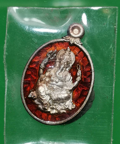 เหรียญพระพิฆเนศ เนื้อเงินลงยาแดง วัดบัวขวัญ |