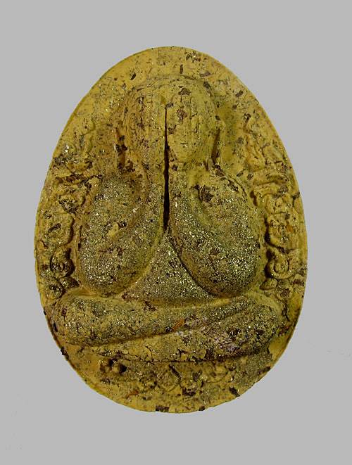 พระปิดตา รุ่น ล้าน รวย รวย หลวงปู่ศิลา สิริจันโท วัดสวนสงฆ์แกแปะ จ.กาฬสินธุ์ ปลุกเสก 9 วาระ เกษรโรยตะใบทอง เลข ๓๑ |