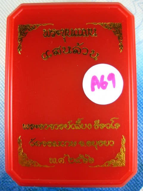 พระขุนแผนแสนล้าน ด้านหน้าฝังหัว ด้านหลังฝัง พญาปรกท้าวเวสสุวรรณ ตะกรุดทองแดง 2 ดอก พระอาจารย์เลี้ยง ธีรวโร วัดจอมเกษ พร้อมกล่องเดิม (---A69----) |