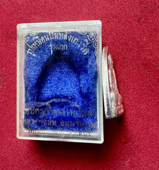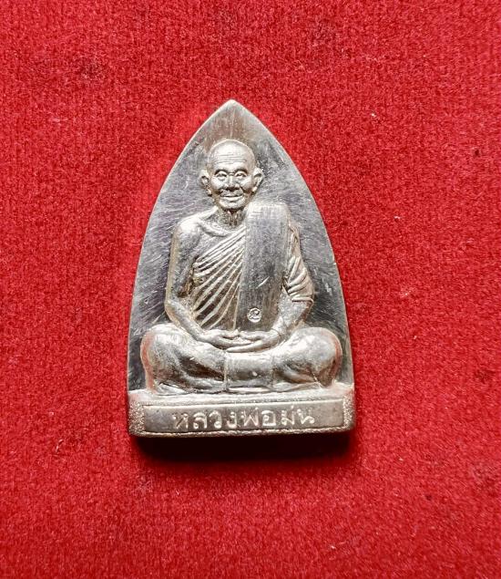 พระรูปเหมือนปั๊มเตารีดรุ่นแรก พิมพ์ใหญ่ เนื้อเงิน กรรมการ 4 ตอกโค๊ด หลวงปู่ม่น วัดเนินตามาก จ.ชลบุรี พ.ศ.2536 สวยมาก กล่องเดิม เคาะแรก