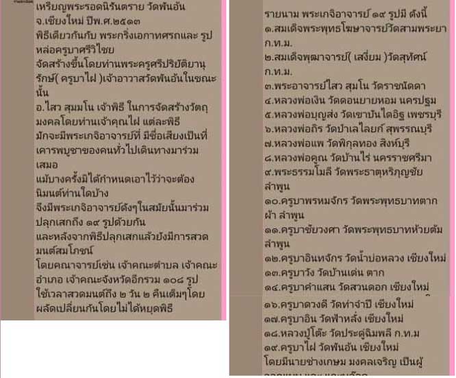 รายนาม พระเกจิอาจารย์ ๑๙ รูปมี ดังนี้