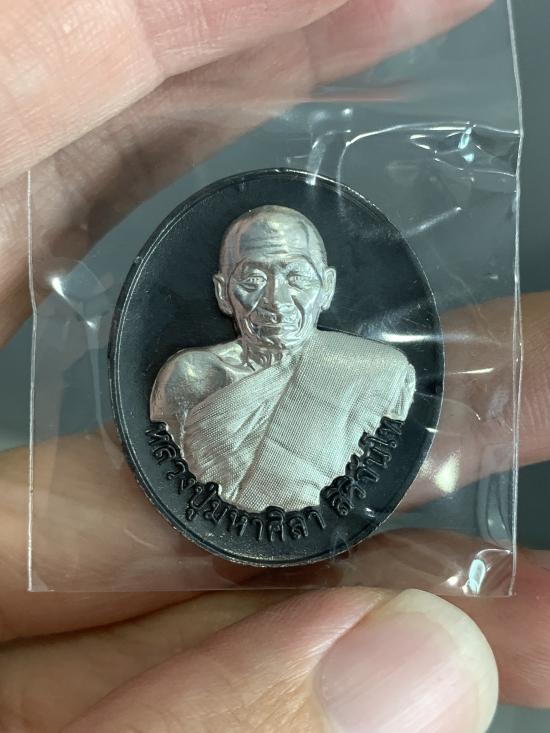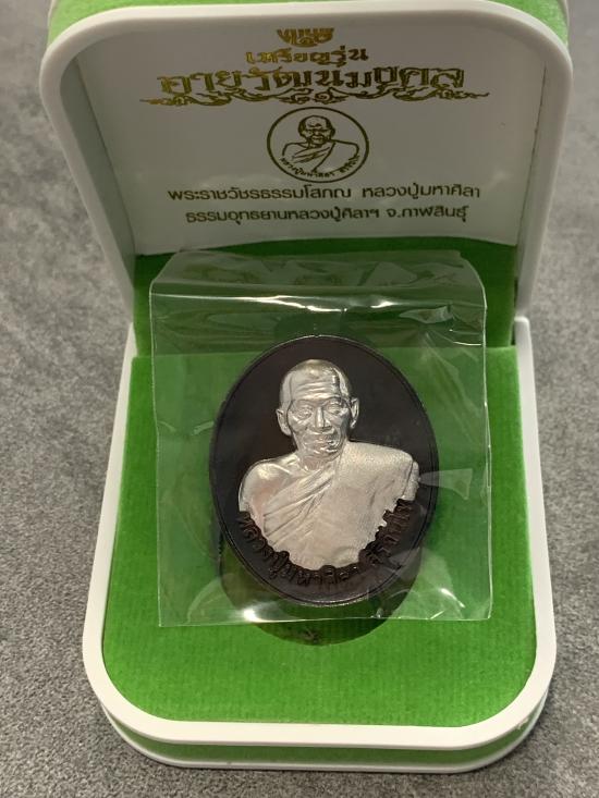 หลวงปู่มหาศิลา หลวงปู่ศิลา รุ่นอายุวัฒนมงคล พิมรุ่นแรก2 รก19เหรียญหล่อเนื้อนวะหน้ากากเงิน เบอร์ 144