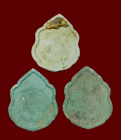 1.2 พระนารายณ์ เนื้อผงสีเขียว ด้านหน้าเป็นพระนารายณ์ 4 กร ประทับบนบัลลังก์นาค ด้านหลังมียันต์ อักขระขอม และชื่อวัด
