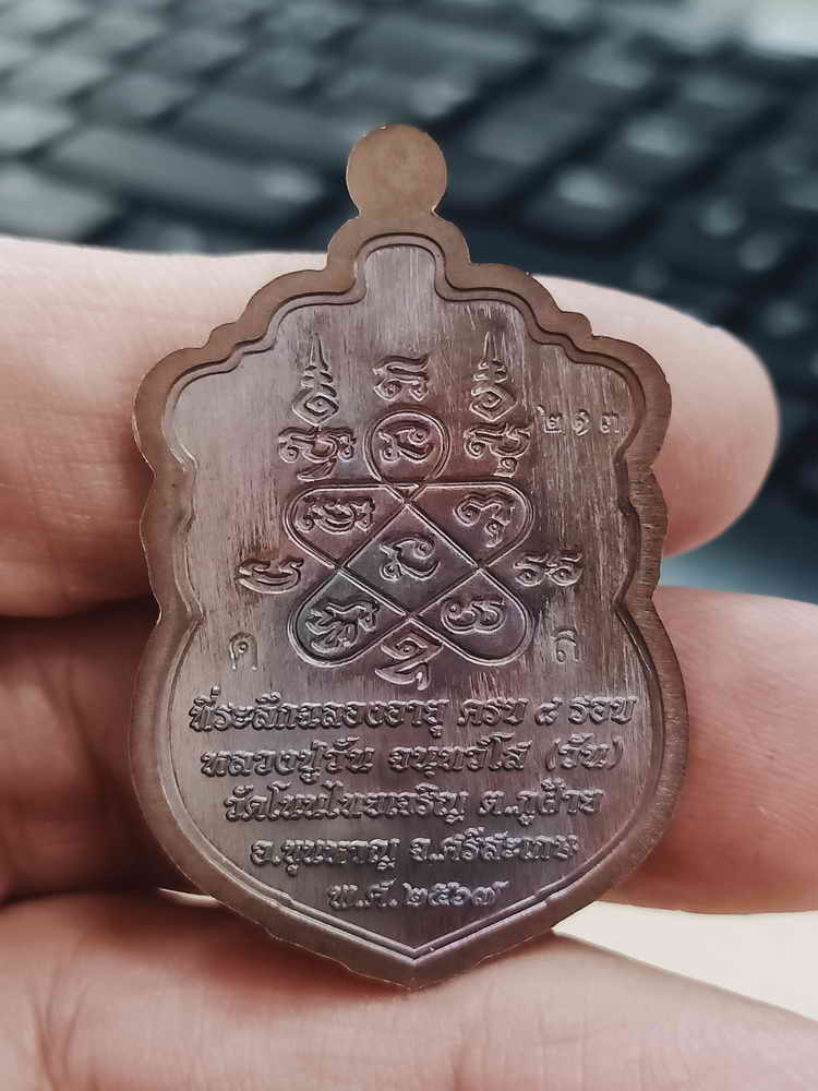 วัดใจ 100 เหรียญเสมา 8 รอบ หลวงปู่วัน วัดโนนไทยเจริญ จ.ศรีสะเกษ 2567 ทองแดงมันปู หน้ากากปลอกลูกปืน ลงยาพื้น ขอบ ซุ้ม จีวร หมายเลข 213 สร้าง 222 เหรียญ กล่องเดิม***ขึ้นชื่อเสมา 8 รอบ ต้องเก็บ |