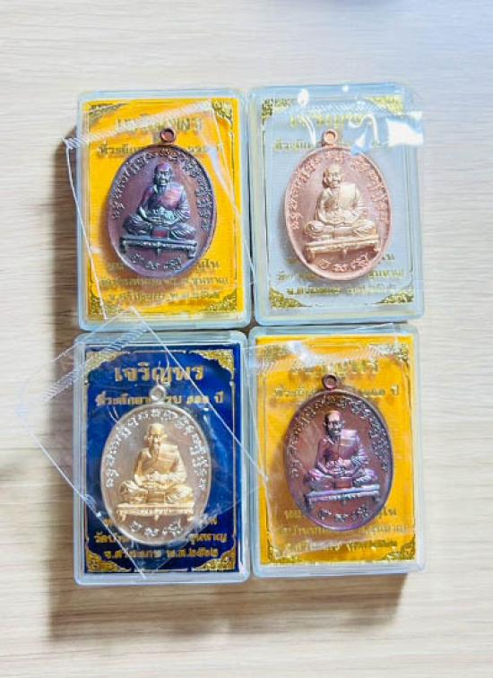 วัดใจ เหรียญเจริญพร หลวงปู่แสน วัดบ้านหนองจิก จ.ศรีสะเกษ 4 เหรียญ