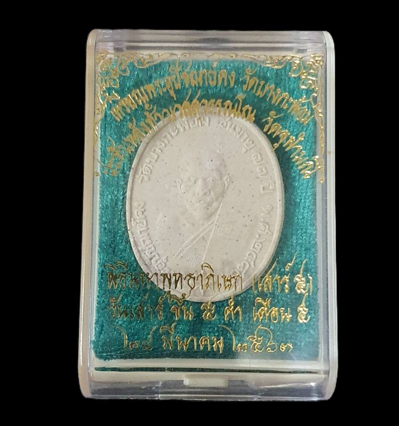 เนื้อผงมหากันขาว พระอุปชาฌาย์คง วัดบางกะพ้อม ประทับหลังท้าวเวสสุวรรณ วัดจุฬามณี |