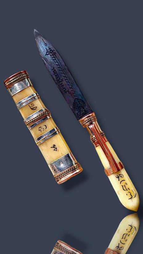 มีดหมอปากกา 2.5 นิ้ว ด้ามกระดูกช้าง ปลอกเนื้อ 3 กษัตริย์ ตอกโค๊ต นะ ซองเดิมๆ รุ่น เพิ่มทรัพย์ เพิ่มสุข ปี 2553 พิธีเสาร์5 หลวงปู่หงษ์ พรหมปัญโญ สุสานทุ่งมน สุรินทร์ |