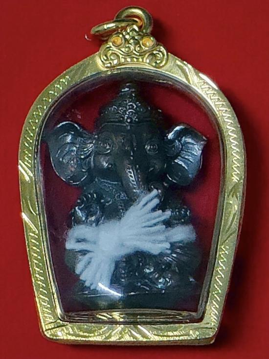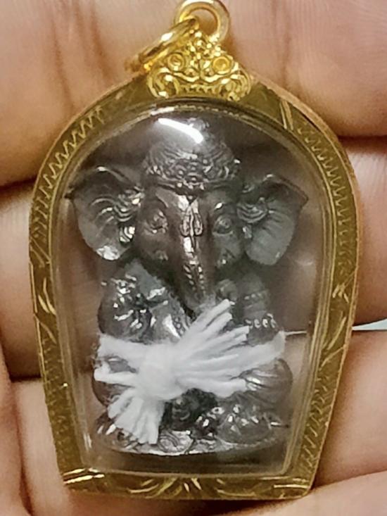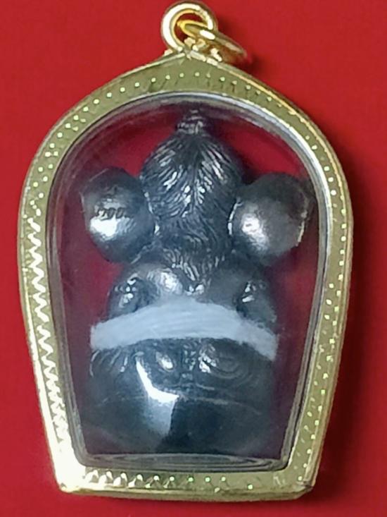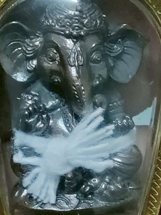 รูปหล่อพระพิฆเนศวร หลวงปู่อิ่ม วัดทุ่งนาใหม่ จ.นครศรีธรรมราช เนื้อนวะ ผูกสายสิญจน์ เลี่ยมกรอบทอง หมายเลข 7 กล่องเดิมๆ |