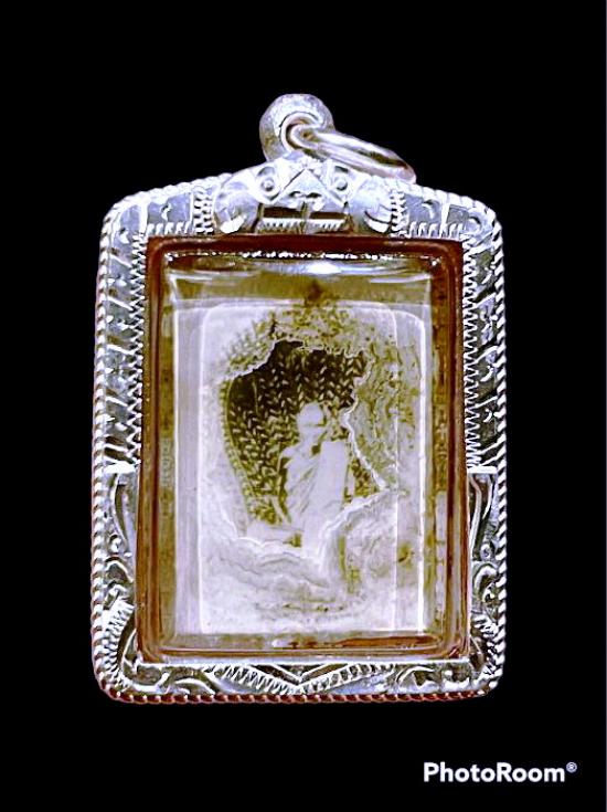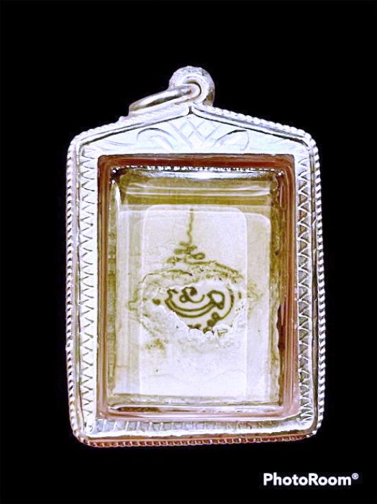 รูปถ่ายอัดกระจกบางขาวดำ หลวงพ่อเดิม หลังยันต์ วัดหนองโพธิ์ นครสวรรค์ ปี 2493 เลี่ยมเงิน