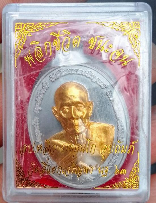 เหรียญหลวงปู่หลิว ปุณณโก อุปถัมภ์ วัดสี่แยกเจริญพร จ.นครปฐม รุ่นพลิกชีวิตชนะจน เนื้อปีกเครื่องบินหน้าทองคำ เลข.2330 ปี63 พร้อมกล่องเดิม |