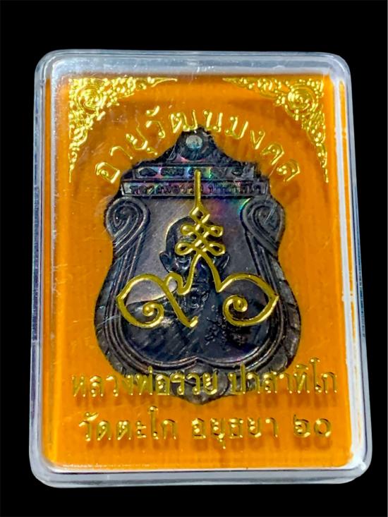 เหรียญอายุวัฒนมงคลหลวงพ่อรวยพร้อมกล่องเดิม ผิวรุ้งรุ้งสวยมากครับองค์นี้ |