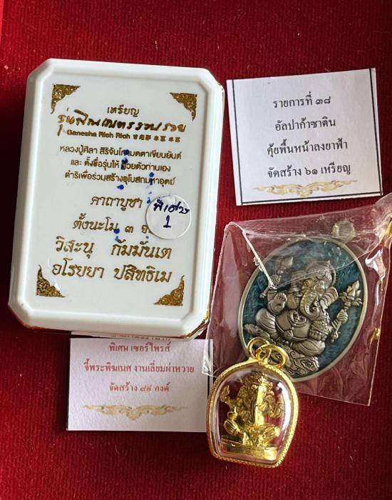 เหรียญพระพิฆเนศ รุ่น"พิณเณตร รวย รวย" หลวงปู่มหาศิลา เมตตาเขียนยันต์และตั้งชื่อให้ด้วยตัวท่านเองครับ ออกในงานที่ระลึกสร้างอุโบสถมหาอุตม์ วัดบ้านโนนเดื่อ จ.ร้อยเอ็ด รายการเซอรไพรส์ รับพระ 2 องค์ หมายเลข 1 |