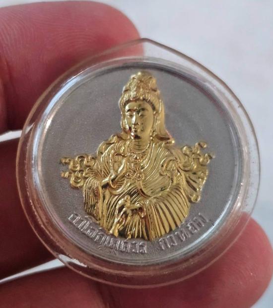 เหรียญพระอวโลกิเตศวร (พระโพธิสัตว์กวนอิม) หลังตราพญามังกรวัดบวรนิเวศวิหาร ปี 2536 เนื้อกะไหล่เงินหน้าทอง ( แจกคนช่วยงานไม่มีให้บูชาทั่วไป)ตอกโค้ดที่ขอบเหรียญ เลี่ยมจับขอบอย่างดี สวยมากๆขนาดใหญ่กว่าเ |