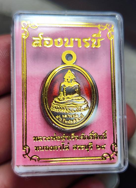 วัดใจ100 เหรียญเม็ดแตงหลวงพ่อสำเร็จศักดิ์สิทธิ์ เนื้อนวะลงยาแดง รุ่นสองบารมี จ.สระบุรี |
