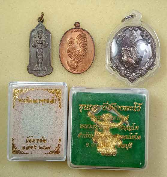 เหรียญเจ้าพ่อพระกาฬ +เหรียญไก่ หลวงปู่สรวง วัดถ้ำพรหมสวัสดิ์ 2 เหรียญ + พระผงหลวงพ่อพิเชฐ วัดโคกหม้อ จ.ลพบุรี.+หนุมานขุนกระบี่เมืองละโว้ หลวงปู่อุทัยสญฺญโต สำนักปฏิบัติธมฺมโชโต ลพบุรี |