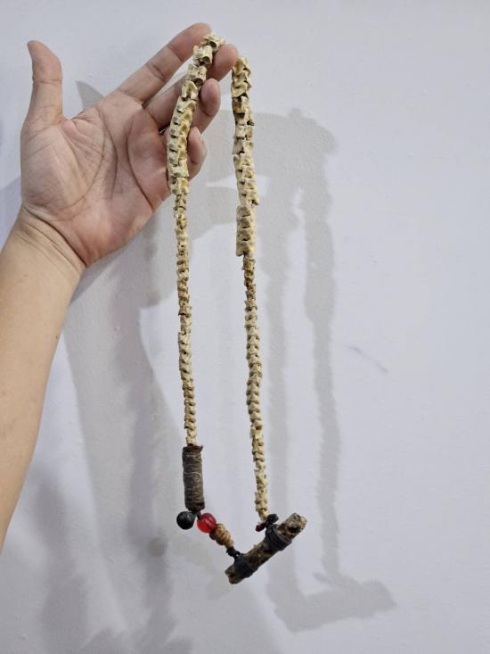 สร้อยกระดูก ง พร้อมตะกรุดและชุดเครื่องรางตามรูป ยาว 26 นิ้วได้บ้านๆมาครับ