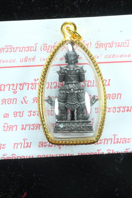 ** 100 เดียวพร้อมเลี่ยมไมครอน **ท้าวเวสสุวรรณฯ วัดจุฬามณี รูปหล่อขนาดห้อยคอ หน้าเทพ เนื้อชนวนรมดำ ปี 2562//h6 |