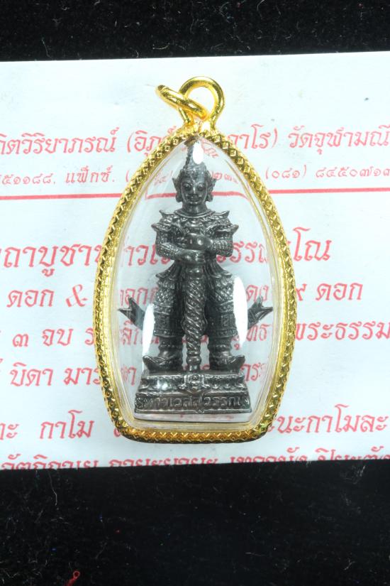 ** 100 เดียวพร้อมเลี่ยมไมครอน **ท้าวเวสสุวรรณฯ วัดจุฬามณี รูปหล่อขนาดห้อยคอ หน้าเทพ เนื้อชนวนรมดำ ปี 2562// |