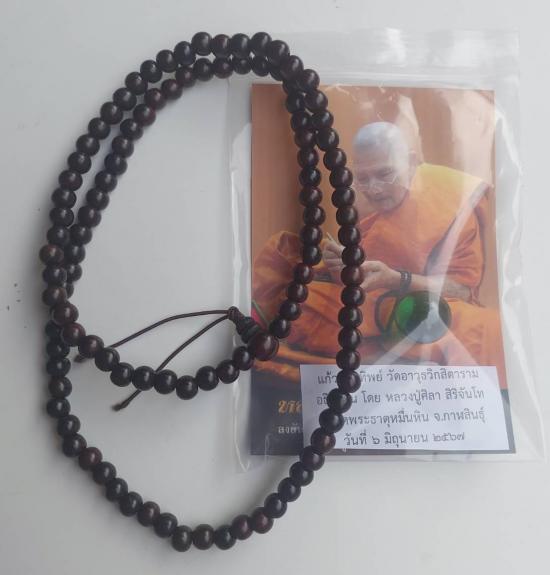 ลูกแก้วศิลาทิพย์ วัดอาวุธฯ พร้อมประคำ108 ((ไม้พยุง 8 มม.)) ไม้มงคลหายาก |