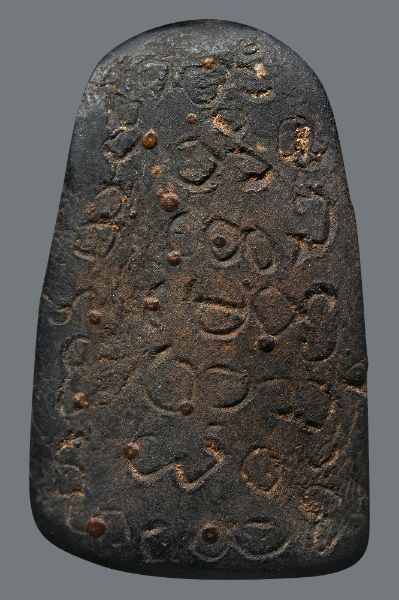 พระผงใบลานผสมว่าน พิมพ์ปิดตาวังหน้า หลังจาร